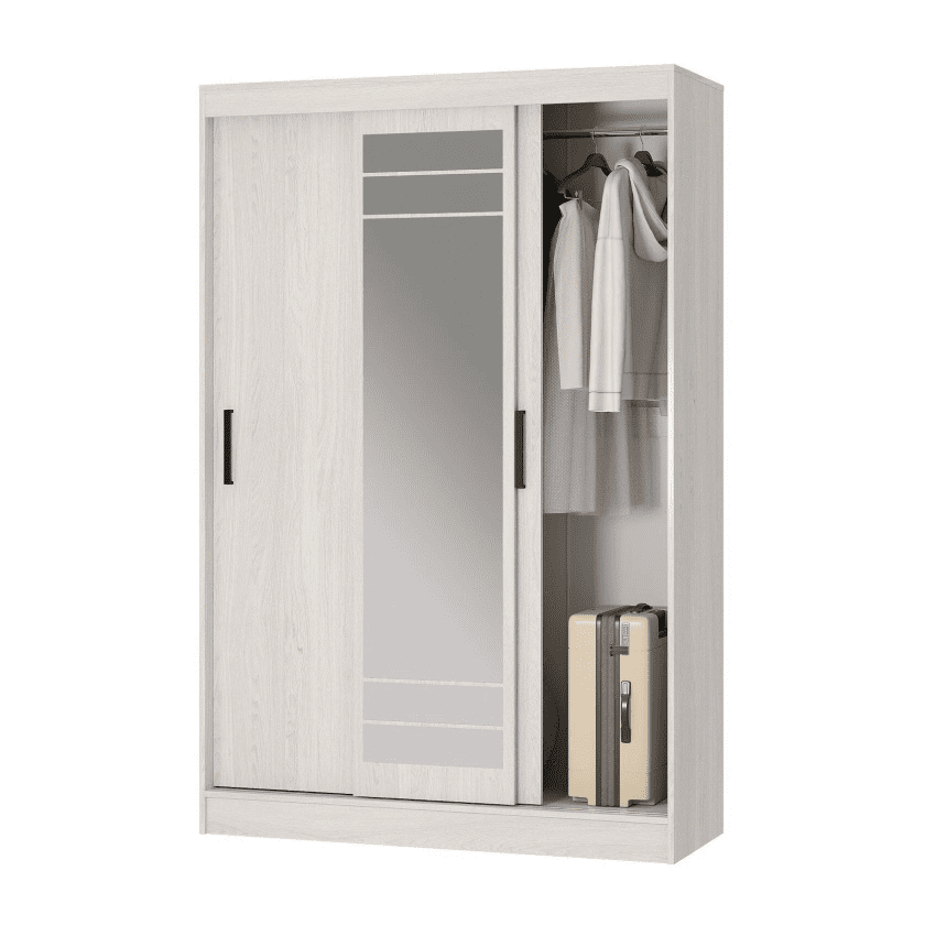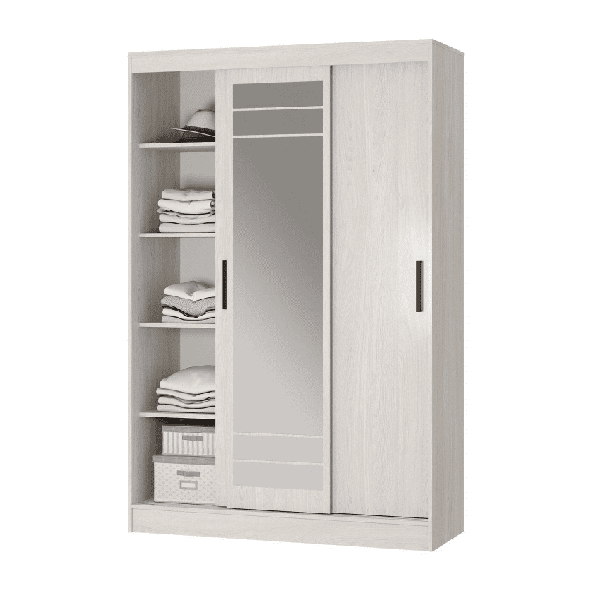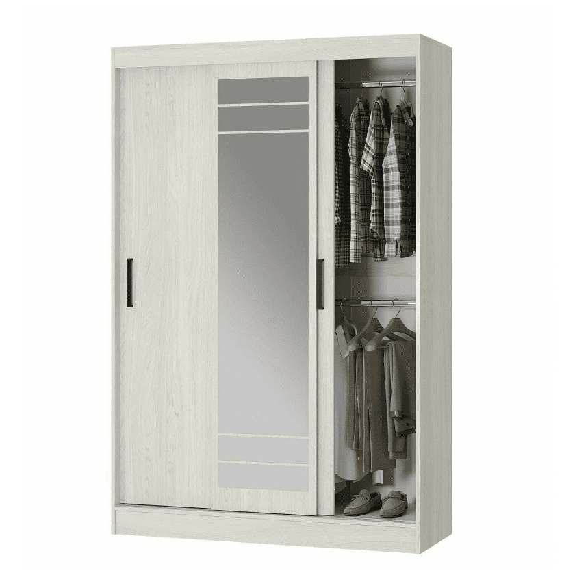 Шкаф-купе, для прихожей/для спальни, трехдверный, наполнение комбинированное, зеркало, 4 полки, 130.1x50x201.6 см