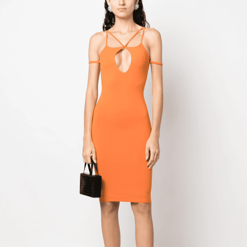 Силуэтное платье - это элегантный и стильный выбор для особого случая. Платье облегает фигуру, подчеркивая ее женственность и изящество. Силуэт создает эффект стройности и грации, а яркий цвет оранжевого цвета добавляет образу энергии и жизнерадостности.