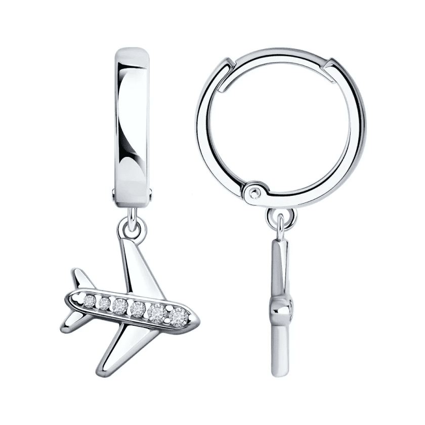 Серьги "Самолёт" с фианитом из серебра 925 пробы